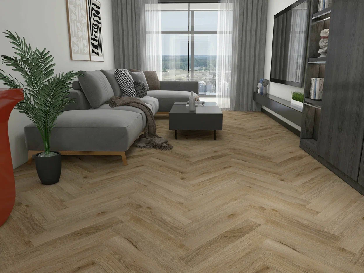 Данный декор кварцвинилового ламината не боится воды, поэтому его можно использовать в ванной или на кухне.