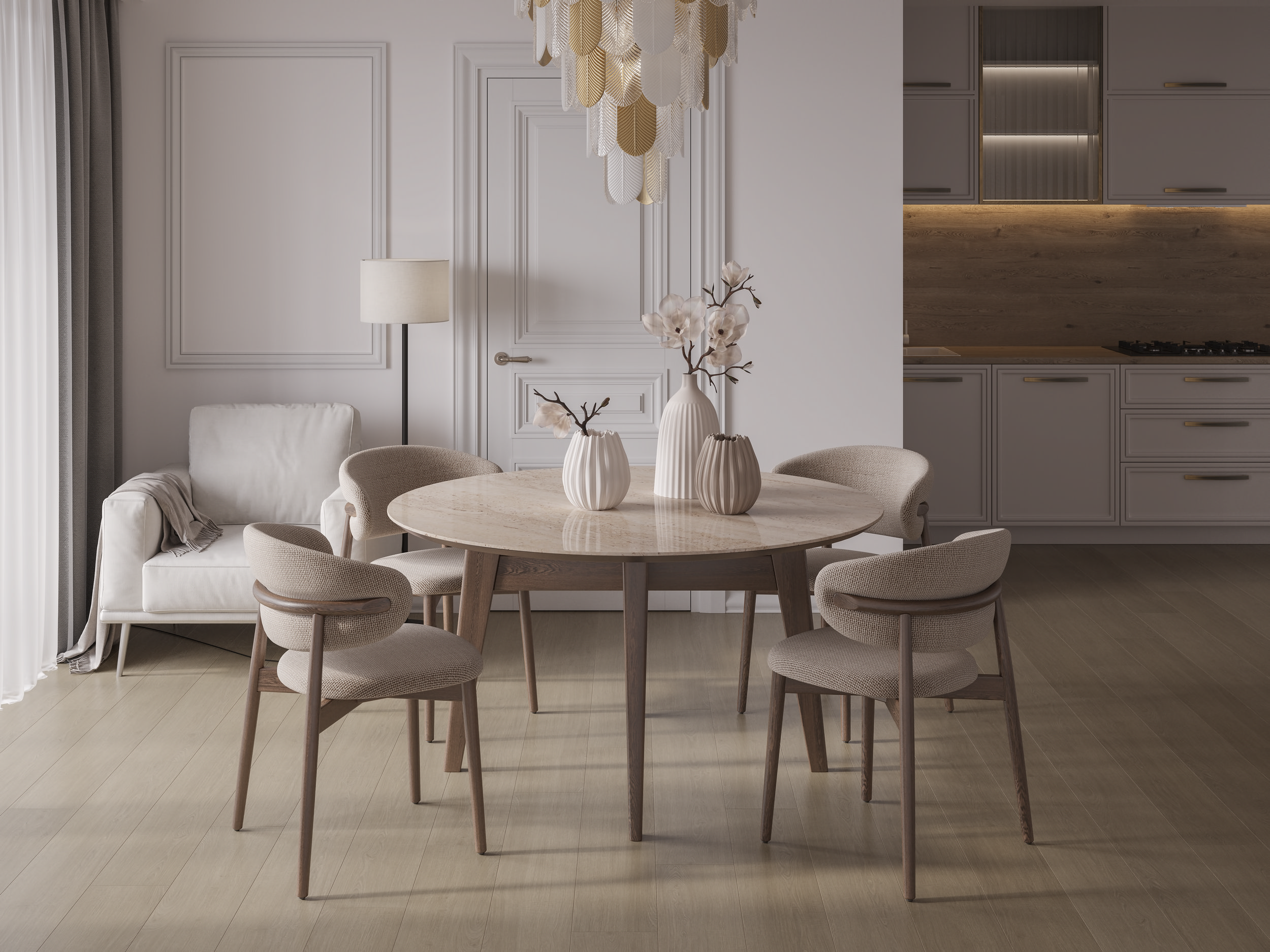 Ламинат совместим со всеми типами тёплого пола: нагревайте его максимум до +28 градусов и наслаждайтесь атмосферой тепла и уюта, даже если за окном зима. Влагостойкий ламинат подходит для лоджии, кухни и коридора.
